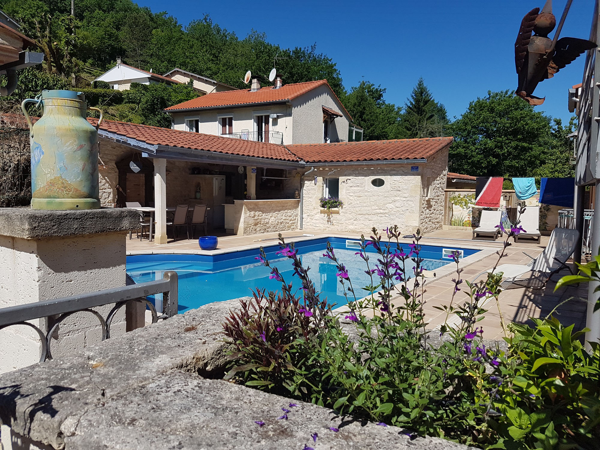 A 5 minutes en voiture du centre ville de Cahors, au pied du Mont Saint-Cyr, Sylvie vous accueille dans sa chambre d’hôtes pour 2 personnes avec piscine.